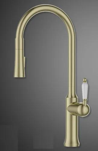 ברז מטבח נשלף 2 מצבי זרימה ידית חרס לבנה זהב מט 1457YB סיוון אופיר