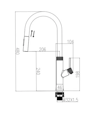 ברז מטבח נשלף בעל 2 מצבי זרימה.