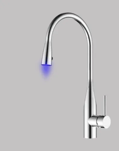 ברז מטבח נשלף בגימור יוקרתי בעל נורת לד במזלף הברז.