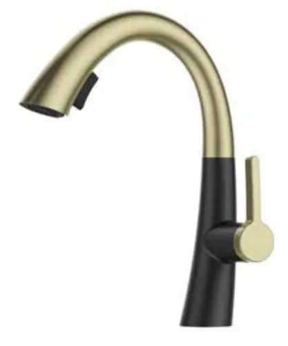 ברז מטבח נמוך נשלף 2 מצבי זרימה שחור מט בשילוב זהב מט 1017GB סיוון אופיר