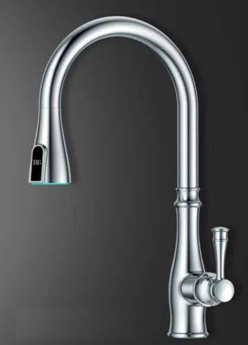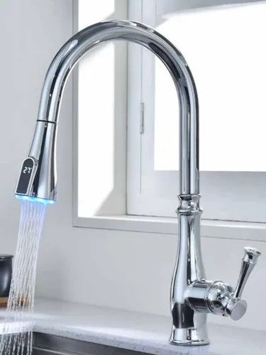 ברז מטבח נשלף בגימור יוקרתי עם נורת לד במזלף הברז.
