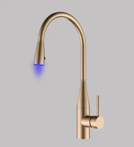 ברז מטבח נשלף בגימור יוקרתי בעל נורת לד במזלף הברז.
