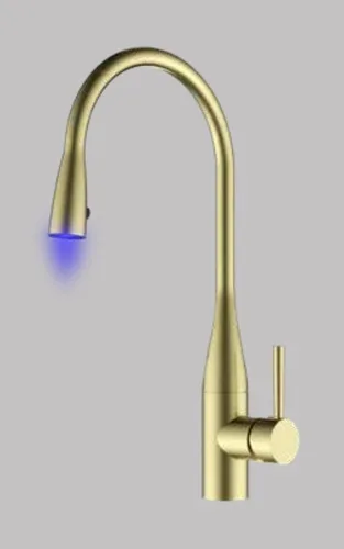 ברז מטבח נשלף מצב זרימה אחד עם נורת לד זהב מט 1027YBL סיוון אופיר