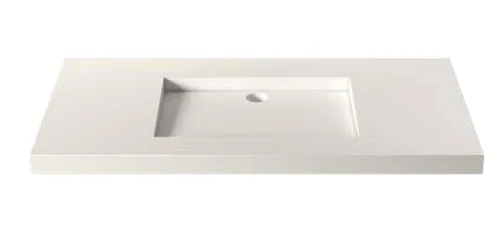 משטח אינטגרלי גרניט פורצלן 120/46 ס"מ בשילוב כיור חרס בעובי 5 ס"מ לבן מט סיוון אופיר