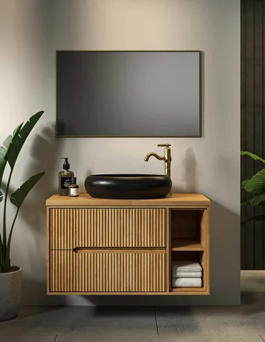 עם משטח בוצ’ר ניתן לבחור כיור חרס מונח לבן מבריק מכל מבחר הכיורים המונחים של סיוון אופיר