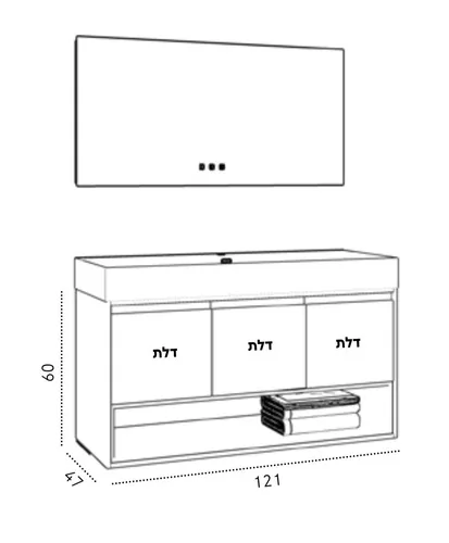 ארון מעיין תלוי במידה 120/47 ס"מ, גוף הארון עץ סנדוויץ איכותי בגימור עץ מלא.