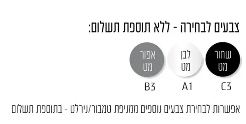 צבעים לבחירה: שחור מט, לבן מט, אפור מט.