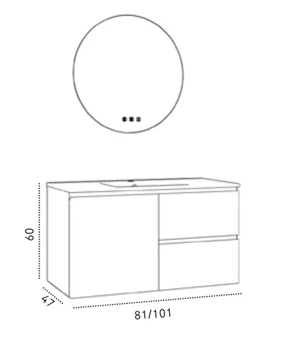 ארון פומפיי תלוי במידה 80/47 ס"מ, גוף הארון עץ סנדוויץ עם גימור צבע אפוקסי בתנור.