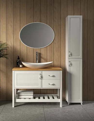 עם משטח בוצ’ר ניתן לבחור כיור חרס מונח לבן מבריק מכל מבחר הכיורים המונחים של סיוון אופיר