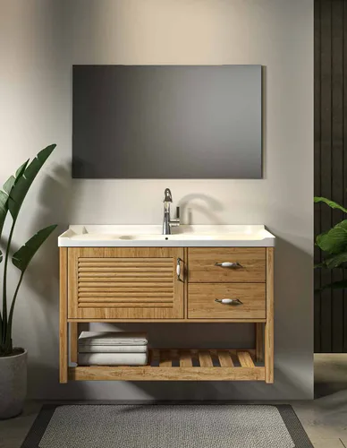 משטח בוצ’ר עץ אלון + כיור חרס מונח/כיור חרס אינטגרלי סקיני לבן/ כיור חרס אינטגרלי לואי לבן.
