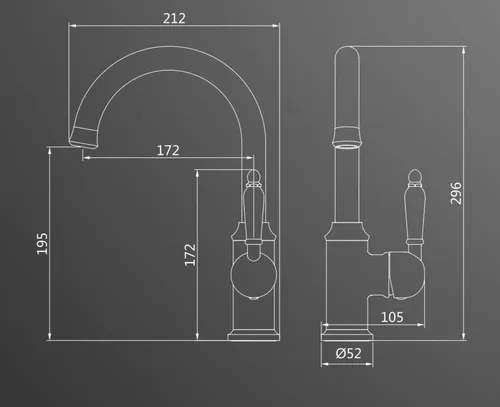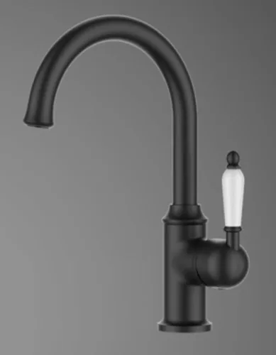 ברז פרח נמוך פיה מסתובבת ידית חרס לבנה שחור מט 3609B סיוון אופיר