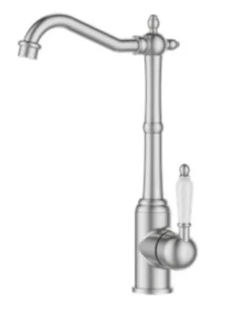 ברז פרח נמוך פיה מסתובבת ידית חרס לבנה ניקל מוברש 3614CB סיוון אופיר