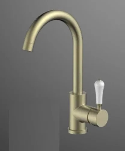 ברז פרח נמוך פיה מסתובבת ידית חרס לבנה זהב מט 1906YB סיוון אופיר