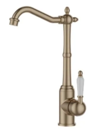 ברז פרח נמוך פיה מסתובבת ידית חרס לבנה רוז גולד מט 3614RG סיוון אופיר