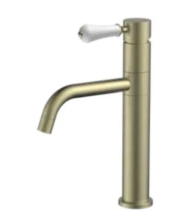 ברז פרח נמוך פיה מסתובבת ידית חרס לבנה זהב מט 1902YB סיוון אופיר