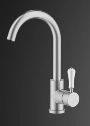 ברז פרח נמוך פיה מסתובבת ידית חרס לבנה ניקל מוברש 1906CB סיוון אופיר