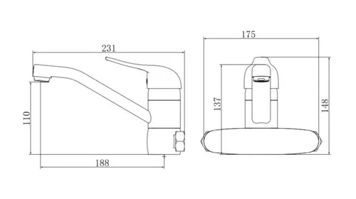 ברז מהקיר לכיור רחצה בעל פיה מסתובבת.