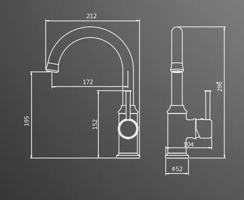 ברז פרח נמוך לכיור אינטגרלי בעל פיה מסתובבת.