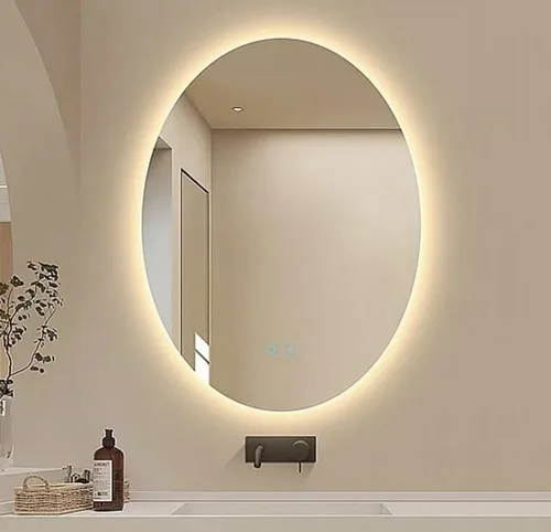 מראת קריסטל אובלית עם נורת לד ומפשיר אדים.