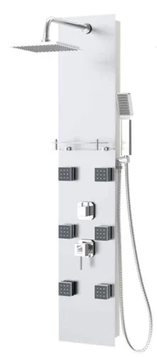 פנל רחצה למקלחת עם אינטרפוץ , 6 ג'טים מתכווננים ראש טוש ומזלף מרובע זכוכית לבנה 2428S סיוון אופיר