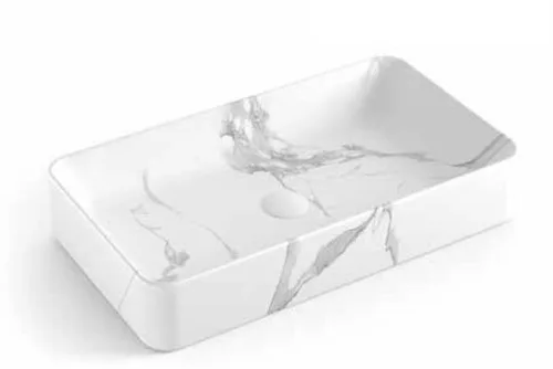 כיור חרס מונח מלבני 60X34X11 ס"מ לבן מט קלקתא 9015WC סיוון אופיר