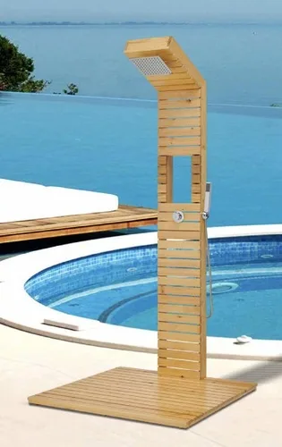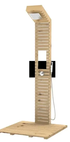 מערכת רחצה יוקרתית לגינה. גוף מערכת מעץ מלא עמיד היטב במים ובחום קיצוני.