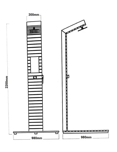 מידה: 220/98/30 ס"מ. (גובה 220 ס"מ, אורך עליון 30 ס"מ, אורך משטח תחתון 98 ס"מ)