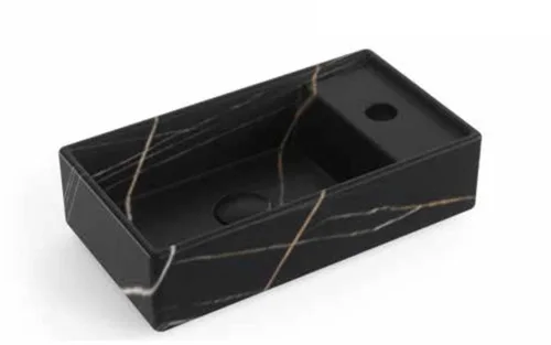 כיור חרס מלבני עם חור לברז 41X22.5X10 ס"מ מונח/תלוי שחור מט קלקתא 9318BC סיוון אופיר
