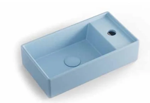 כיור חרס מלבני עם חור לברז 41X22.5X10 ס"מ מונח/תלוי תכלת מט 9318BL סיוון אופיר