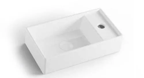 כיור חרס מלבני בעל חור לברז, ניתן מונח או תלוי.