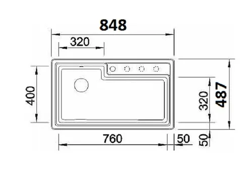 אורך: 48.7 ס"מ, רוחב: 84.8 ס"מ, עומק כיור: 21 ס"מ