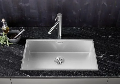 כיור עשוי מדורינוקס - נירוסטה עמידה מאוד. חומר ייחודי בפיתוח של בלנקו. בזכות גימור דורינוקס הכיור מקבל מרקם הומוגני