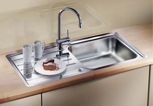 כיור מטבח נירוסטה בלנקו מקורי מדגם מדיאן 6S XL IF. כיור נירוסטה יחיד גדול במיוחד עם משטח עבודה.
