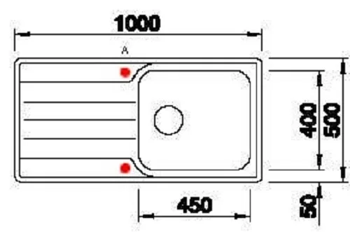 אורך: 50 ס"מ, רוחב: 100 ס"מ, עומק הכיור: 18.5 ס"מ