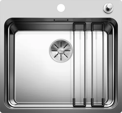 כיור מטבח בלנקו מקורי מדגם אטגון 500IF/A. כיור מטבח נירוסטה ללא פאנל מגיע עם מסילת נירוסטה.