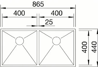 כיור מטבח נירוסטה 44X86.5X17.5 ס"מ בלנקו ZEROX 400/400 IF/N זירוקס BLANCO BLANCO בלנקו