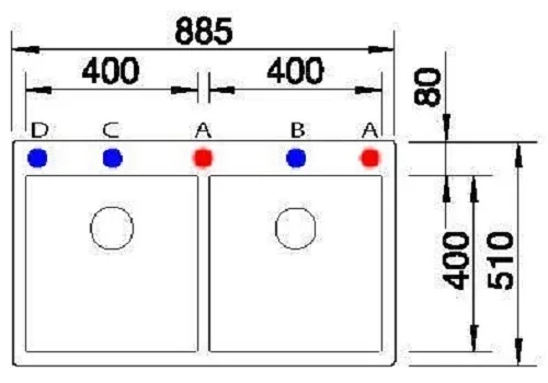 אורך: 51 ס"מ, רוחב: 88.5 ס"מ, עומק הכיור: 18.5 ס"מ
