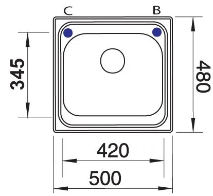 אורך: 48 ס"מ, רוחב: 50 ס"מ, עומק כיור: 16 ס"מ