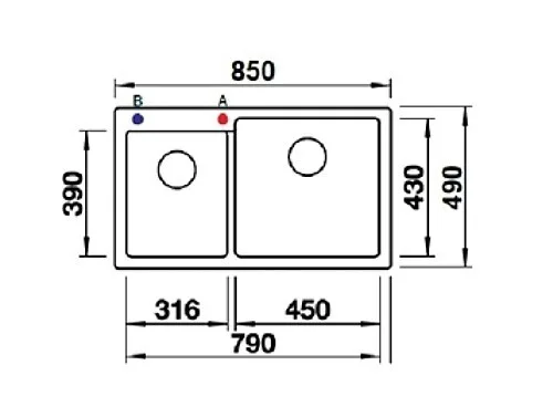 אורך: 49 ס"מ, רוחב: 85.4 ס"מ, עומק הכיור: 22 ס"מ
