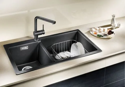 כיורי מטבח בלנקו עשויים מחומר 80% גרניט ו-20% אקריליק. בעל מרקם קטיפתי אחיד לכל עומק הכיור.