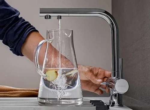 בעל ידית אחת לברז המטבח וידית נוספת למים קרים מטוהרים.