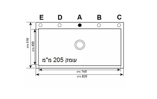 אורך: 51 ס"מ, רוחב: 82 ס"מ, עומק הכיור 20.5 ס"מ.