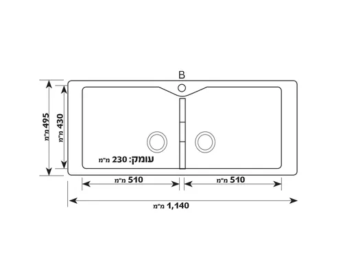 אורך: 49.5 ס"מ, רוחב: 114 ס"מ (כל כיור 51 ס"מ), עומק הכיור 23 ס"מ.