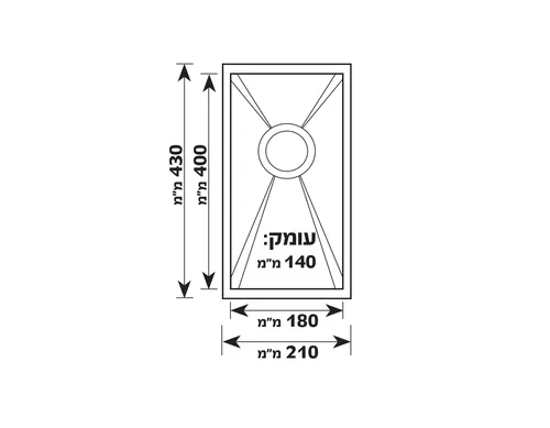 אורך: 43 ס"מ, רוחב: 21 ס"מ, עומק הכיור 14 ס”מ