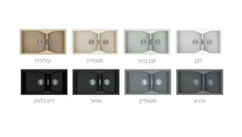 כיור גרניט כפול עם אוברפלואו (גלישת ניקוז יתר). בהתקנה שטוחה/ תחתונה