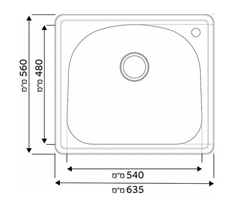 אורך: 56 ס"מ, רוחב: 63.5 ס"מ, עומק הכיור 22.8 ס"מ