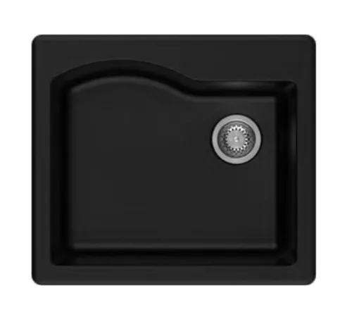 כיור יחיד גרניט גודל אמריקאי. התקנה שטוחה/תחתונה. חור קיים A.