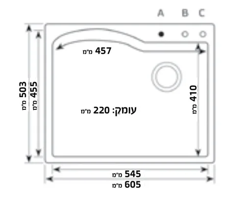 אורך: 50.3 ס"מ, רוחב: 60.5 ס"מ, עומק הכיור 22 ס"מ.