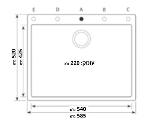 אורך: 52 ס"מ, רוחב: 58.5 ס"מ, עומק כיור 22 ס"מ