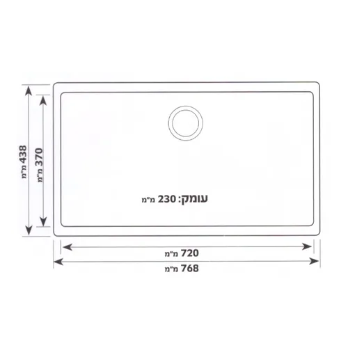 אורך: 43.8 ס"מ, רוחב: 76.8 ס"מ, עומק הכיור 23 ס"מ.